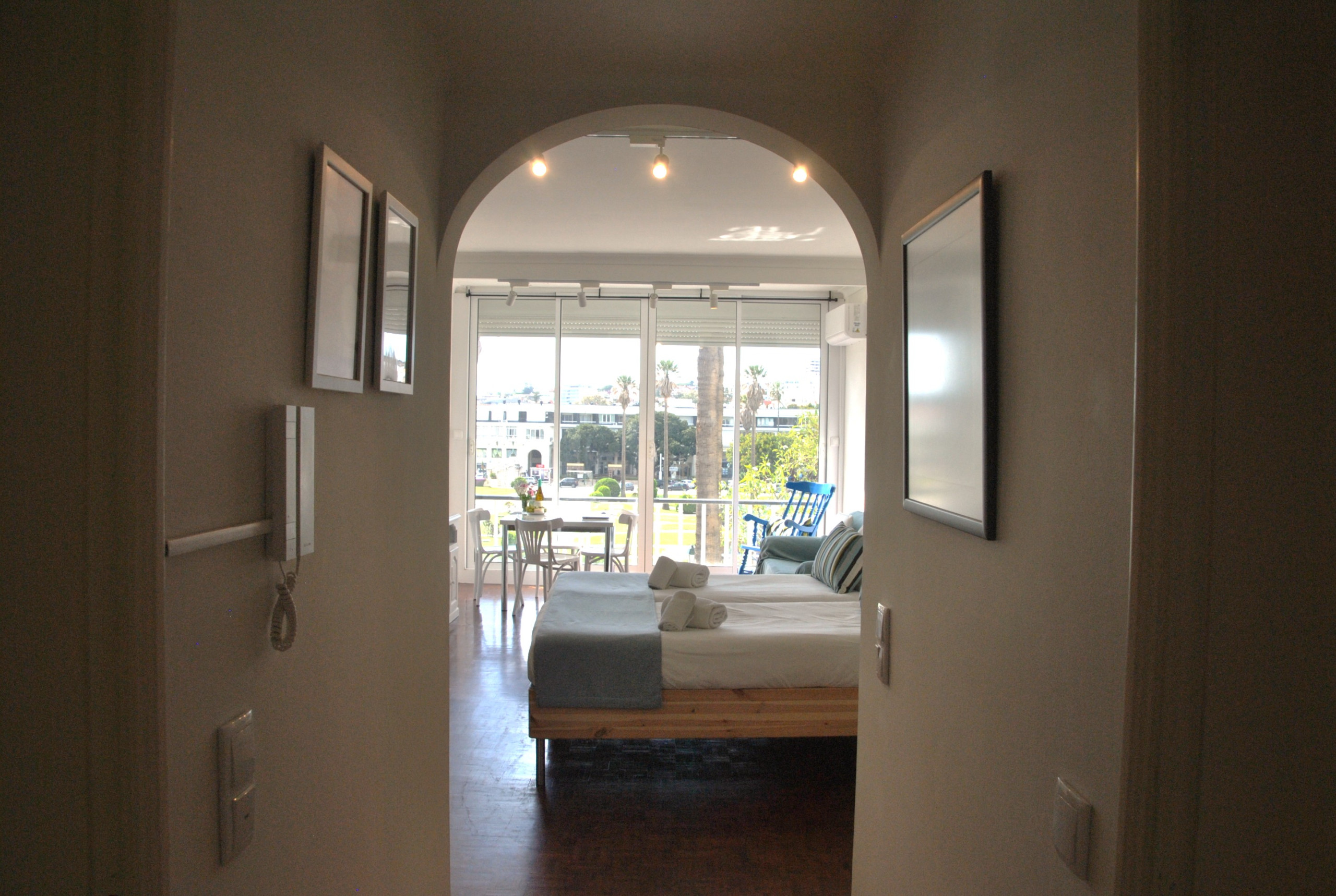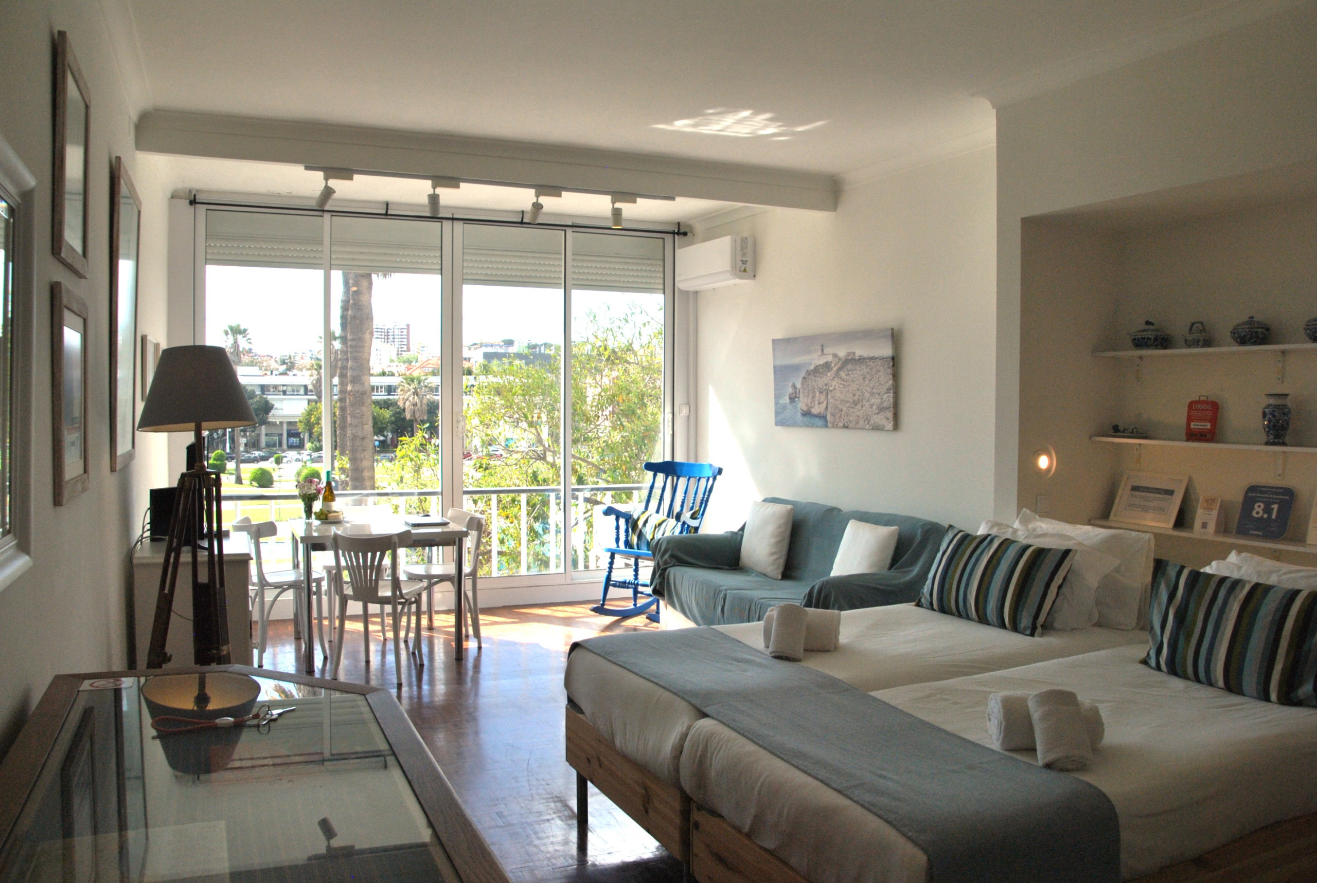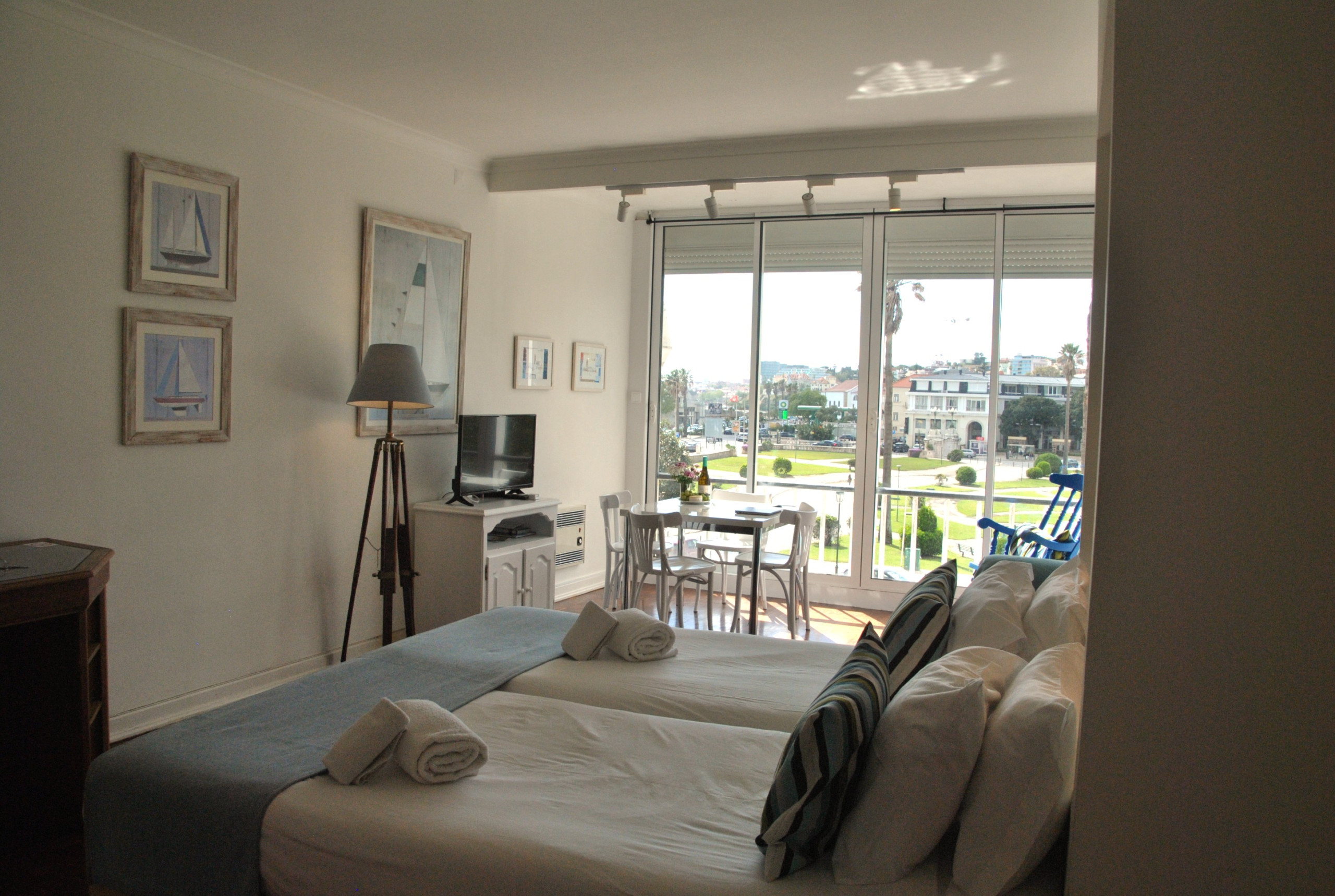 Este apartamento tem amplas janelas com vista para os jardins do Casino do Estoril. O apartamento contém uma cama de casal, uma cama de solteiro, uma confortável zona de estar, uma zona de refeições com mesa e cadeiras, uma cozinha completa e uma casa de banho com banheira. Para conforto dos nossos hóspedes inclui também ar condicionado Internet Wi-Fi e TV cabo grátis. Os hóspedes podem preparar as suas próprias refeições na cozinha equipada à sua disposição, ou sair para comer num dos variados e agradáveis restaurantes da zona de Estoril/Cascais.