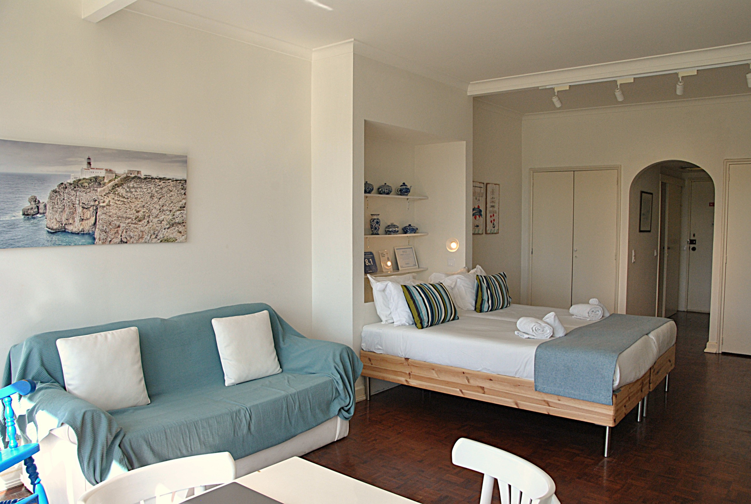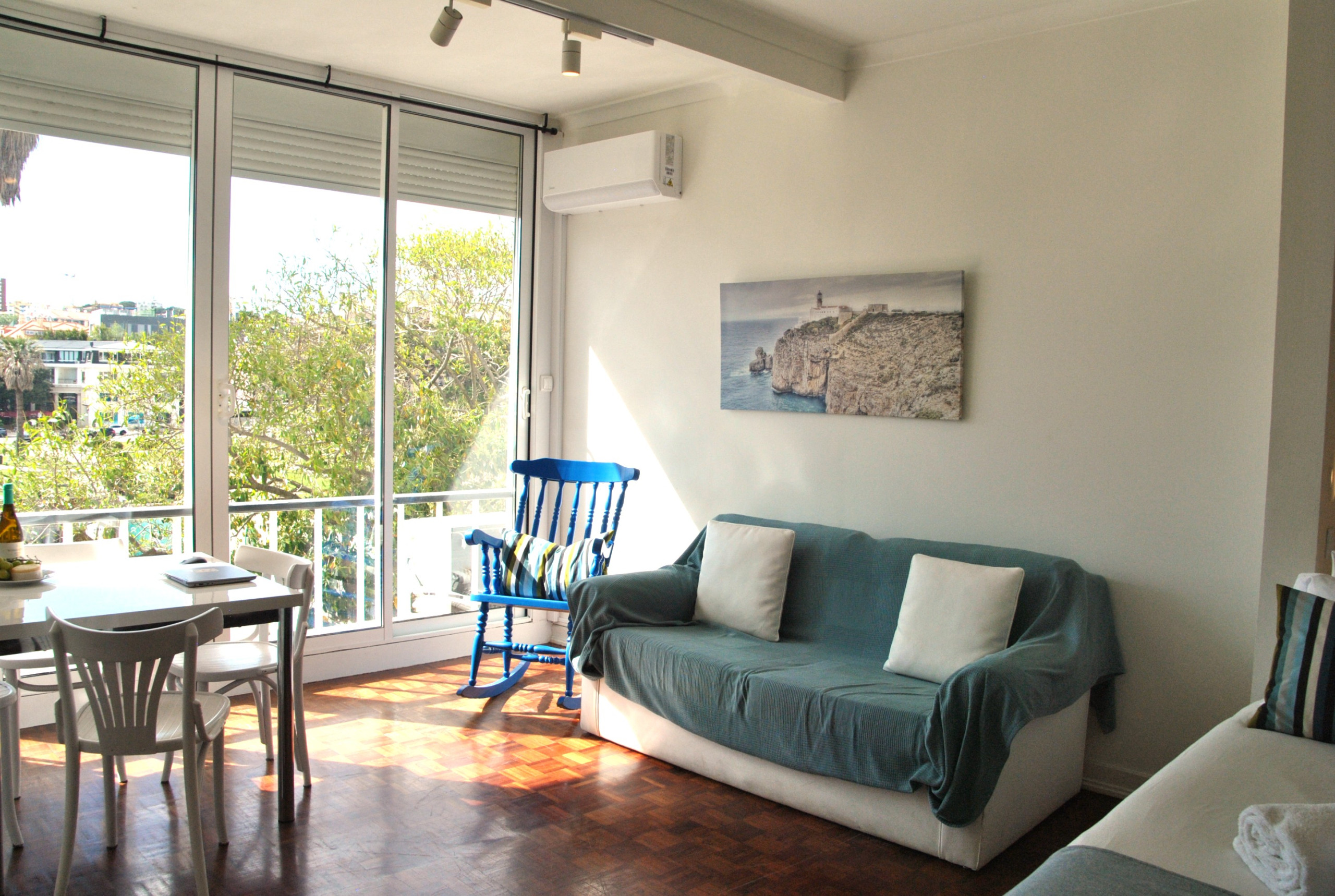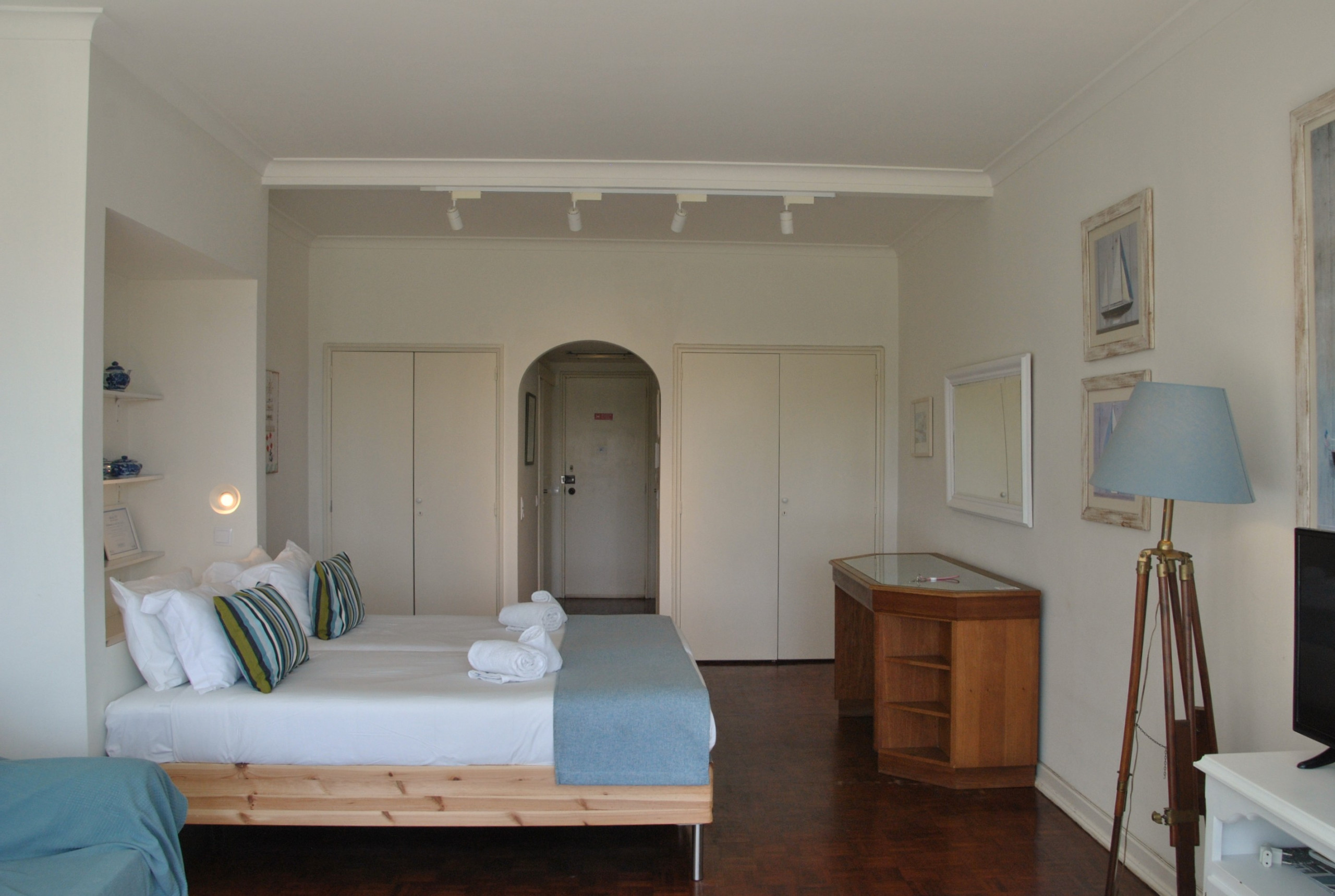 Este apartamento tem amplas janelas com vista para os jardins do Casino do Estoril. O apartamento contém uma cama de casal, uma cama de solteiro, uma confortável zona de estar, uma zona de refeições com mesa e cadeiras, uma cozinha completa e uma casa de banho com banheira. Para conforto dos nossos hóspedes inclui também ar condicionado Internet Wi-Fi e TV cabo grátis. Os hóspedes podem preparar as suas próprias refeições na cozinha equipada à sua disposição, ou sair para comer num dos variados e agradáveis restaurantes da zona de Estoril/Cascais.