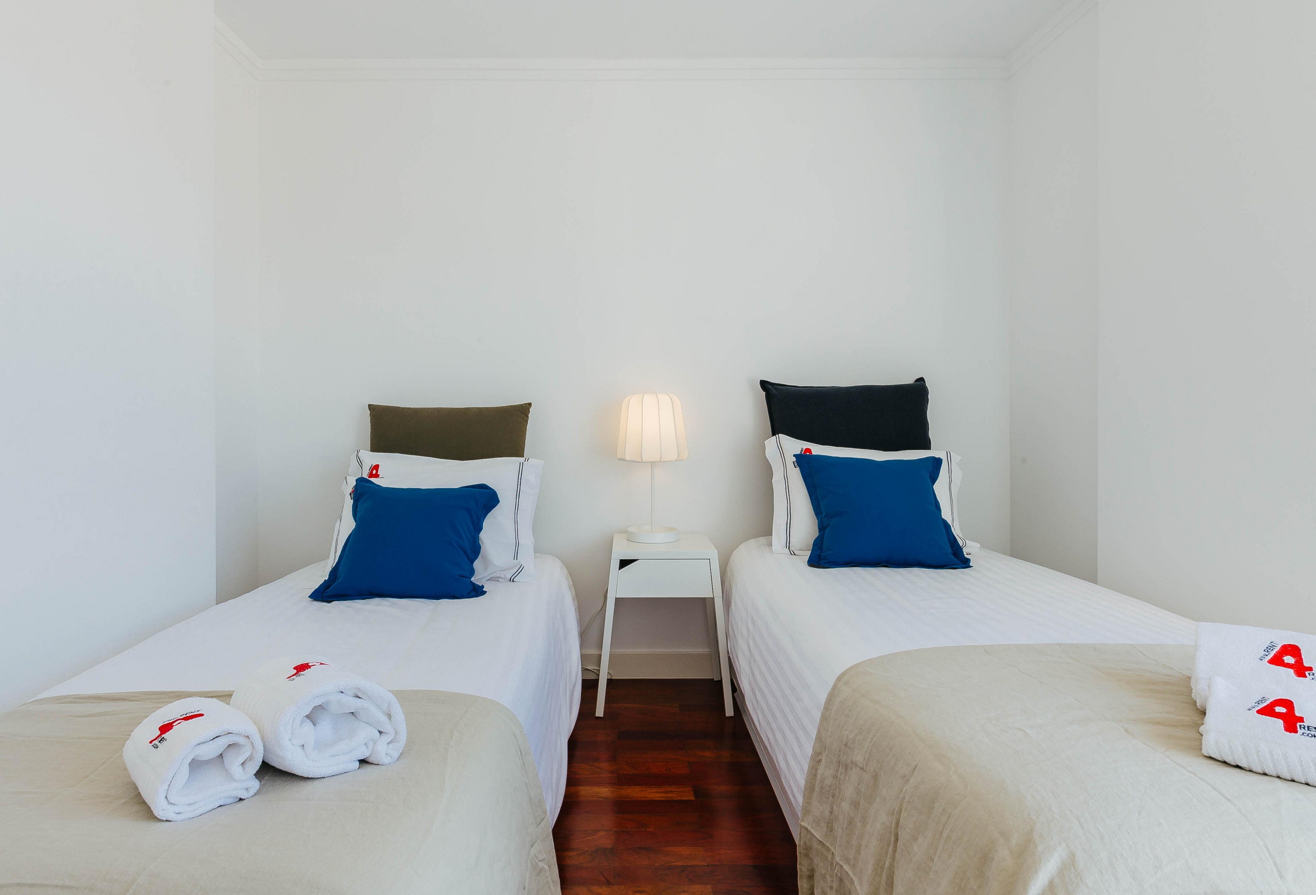 This is a completely renovated apartment with two bedrooms and panoramic view over the Tagus River and Lisbon. One bedroom has a double bed and the other has two single beds. The apartment has a bathroom with a shower, a complete kitchen, a living/dining room, free wi-fi Internet and cable TV. All rooms have windows with an amazing view over Lisbon.